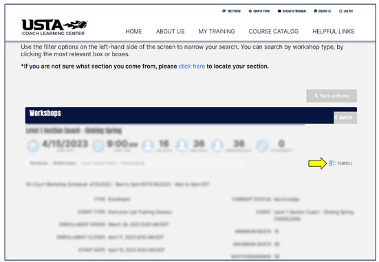 5. To the right of the page, click the 'ENROLL' icon [see image below]